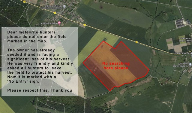 “Where are #meteorites from #2024BX1 / #Sar2736 ? Preliminary modelling shows most small ones are in woods ~10 km west of Nauen, but 10+ g rocks are in fields. Due to the very steep entry angle, the strewn field is quite small, so the chances are good.” – Denis Vida posted on X (@meteordoc):